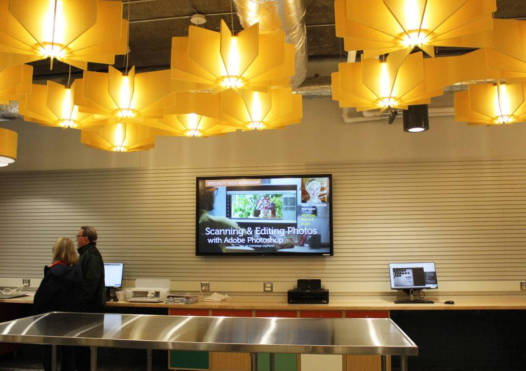 When I talked to Tricia Duzan, the deputy director, she happily explained the new machines and programs they offered, along with her excitement over the community’s reaction to the new area and the transformation it’s undergone. She emphasized the flexibility of the new space, adapting to the needs of the community as they come up. Her word of advice? Use the elevator instead of the stair to get the full experience, the wow factor is doubled when those doors open.
